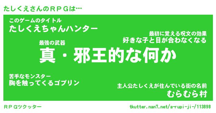| ファンタジー風あだ名 | 『タシフェル』『エターナルタシクエー』 |