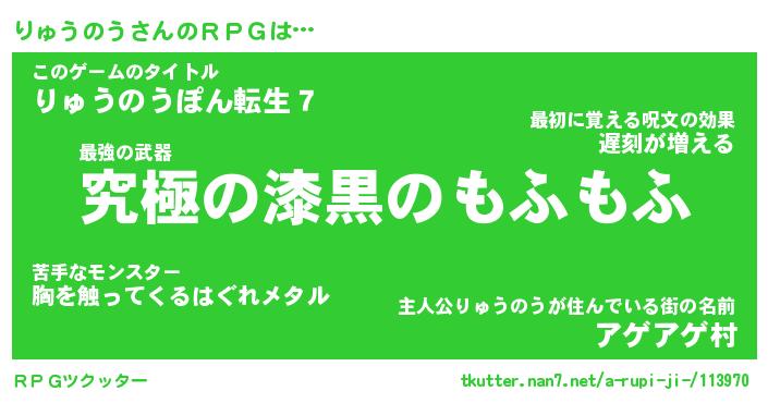 | ヘコむあだ名 | 『りゅもー』『豆乳』『りゅぷりん』 |