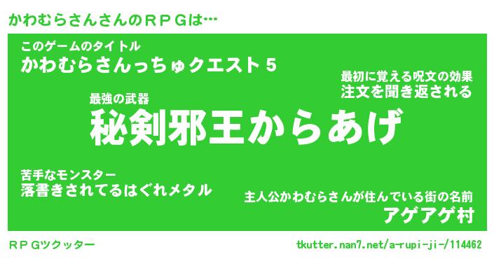 | ヒーロー風カッコイイあだ名 | 『スーパーカワムラサン』『幻影騎士カワ』 |