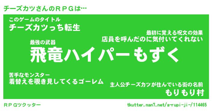 | ファンタジー風あだ名 | 『チーフェル』『エターナルチーズカツー』 |