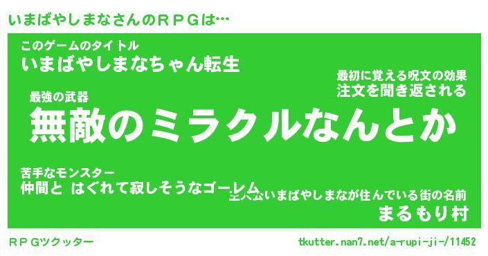 | 男性向けラノベタイトル風あだ名 | 『イマバヤシマナアートオンライン』 |