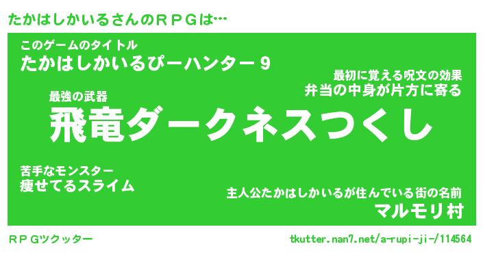 | 伝説のあだ名 | 『封印されし傭兵たかはしかいる』 |