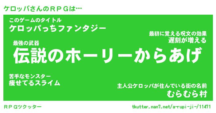 | ファンタジー風あだ名 | 『ケロフェル』『エターナルケロッパー』 |
