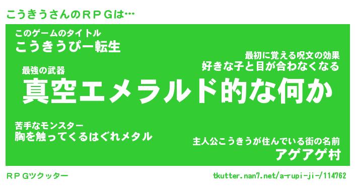 | ファンタジー風あだ名 | 『コウフェル』『エターナルコウキウー』 |