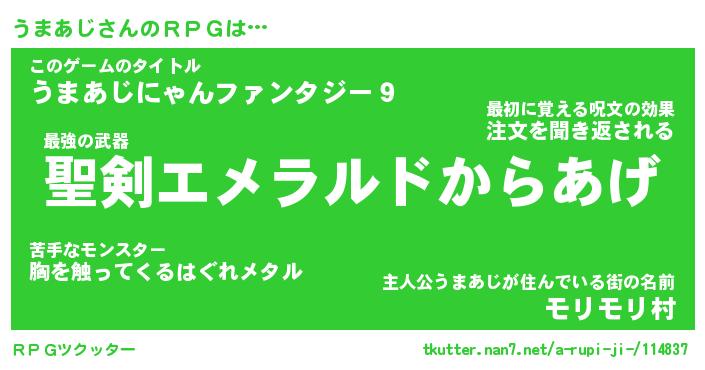 | 胡散臭い通販商品みたいなあだ名 | 『必ず成功する霊験あらたかなお札…その名も「うまあじ」』 |