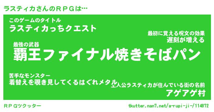 | ファンタジー風あだ名 | 『ラスフェル』『エターナルラスティカー』 |