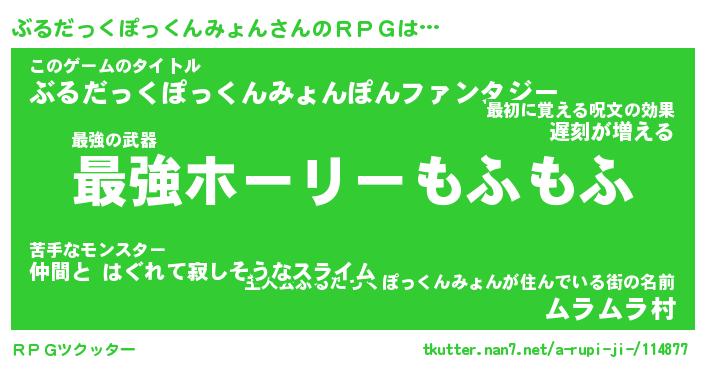 | ヘコむあだ名 | 『ぶるふぇ~』『豆乳』『ぶるぷりん』 |