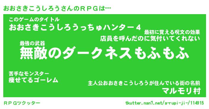 | 伝説のあだ名 | 『封印されし傭兵おおさきこうしろう』 |