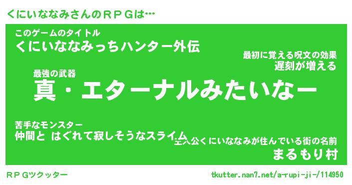 | 男性向けラノベタイトル風あだ名 | 『クニイナナミアートオンライン』 |