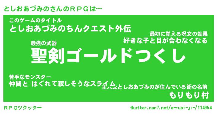 | 胡散臭い通販商品みたいなあだ名 | 『必ず成功する霊験あらたかなお札…その名も「としおあづみの」』 |