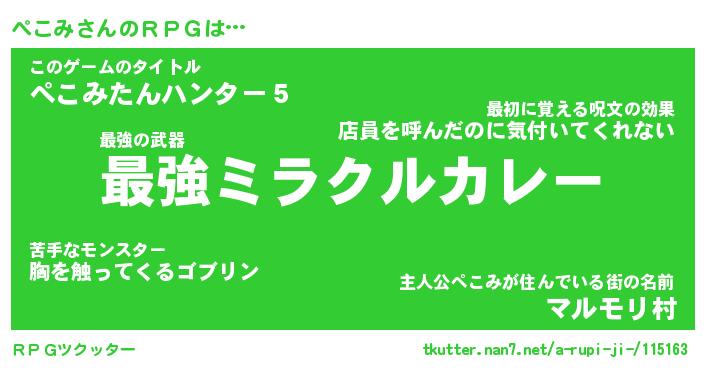 | ヒーロー風カッコイイあだ名 | 『スーパーペコミ』『ウルトラぺこみマン』 |