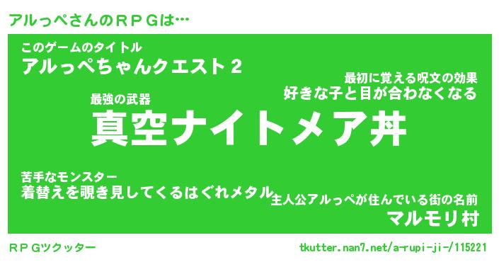 | 胡散臭い通販商品みたいなあだ名 | 『億万長者になれる霊験あらたかなお札…その名も「アルっぺ」』 |
