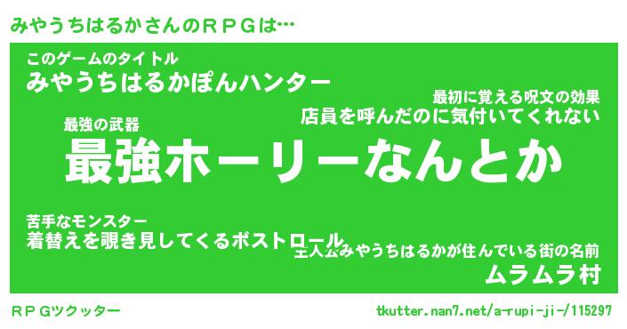 | 胡散臭い通販商品みたいなあだ名 | 『モテモテ間違いなし水晶球…その名も「みやうちはるか」』 |