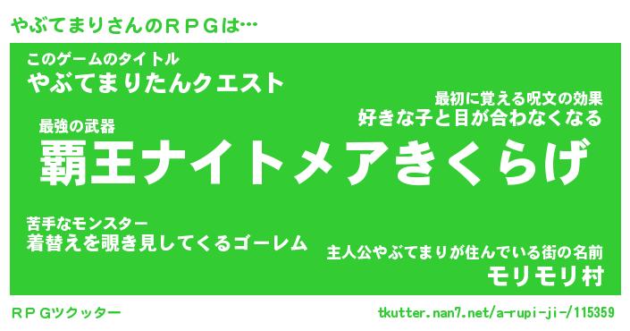 | ファンタジー風あだ名 | 『ヤブフェル』『エターナルヤブテマリー』 |