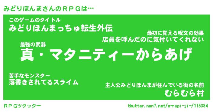 | 胡散臭い通販商品みたいなあだ名 | 『億万長者になれる霊験あらたかなお札…その名も「みどりほんま」』 |