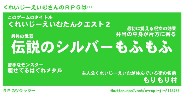 | 男性向けラノベタイトル風あだ名 | 『くれいじーえいむの憂鬱』 |