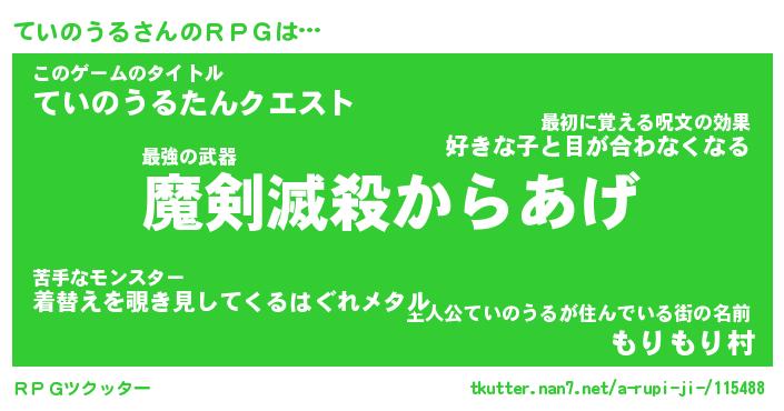 | 男性向けラノベタイトル風あだ名 | 『ていのうるの憂鬱』 |