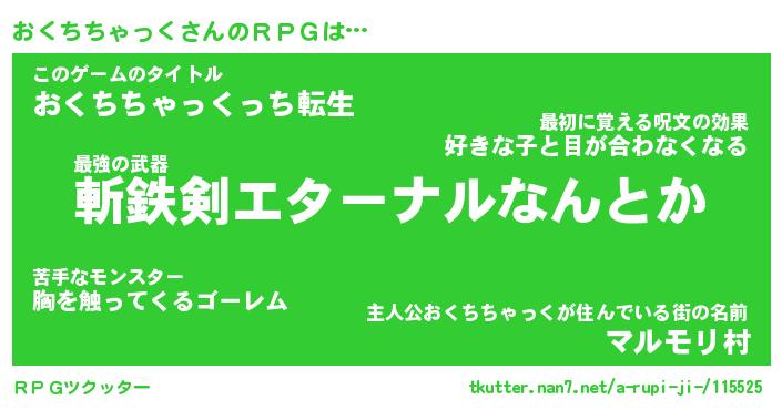 | 女子向けラノベタイトル風あだ名 | 『(仮)おくちちゃっくのやんごとなき事情』 |