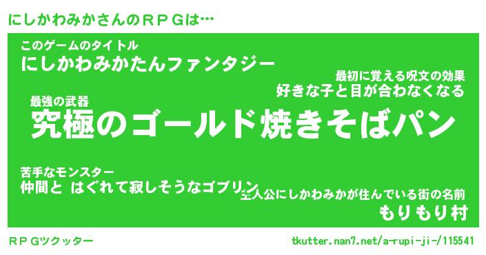 | ヒーロー風カッコイイあだ名 | 『スーパーニシカワミカ』『幻影騎士ニシ』 |