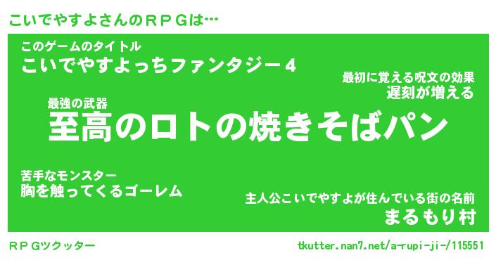 | ツイッター | こいでやすよさんのツイッターID『dendenmushi_star』 |