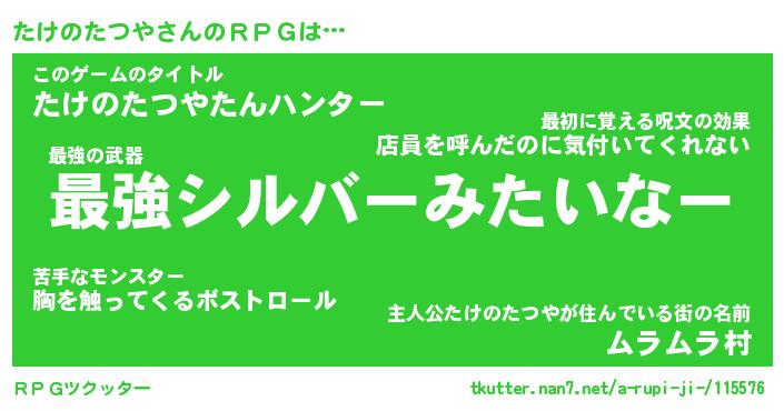 | 男性向けラノベタイトル風あだ名 | 『タケノタツヤアートオンライン』 |