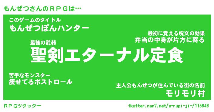 | ファンタジー風あだ名 | 『モンフェル』『エターナルモンゼツー』 |