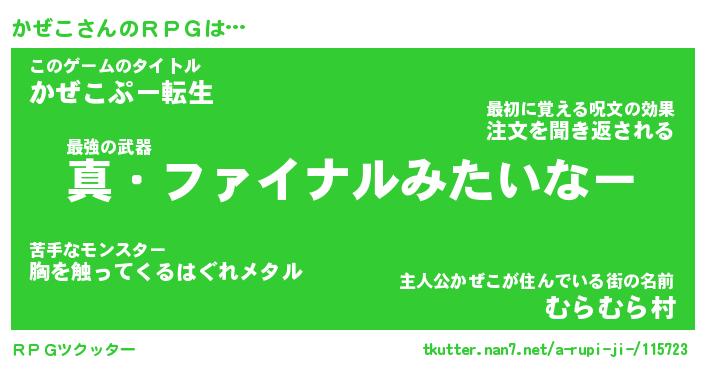 | 男性向けラノベタイトル風あだ名 | 『カゼコアートオンライン』 |