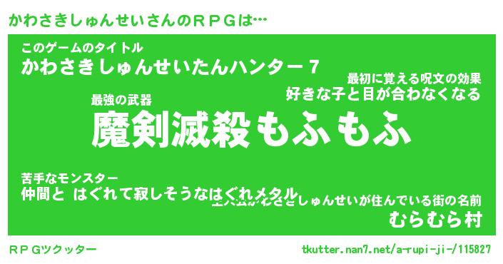 | 伝説のあだ名 | 『伝説のスナイパーかわさきしゅんせい』 |