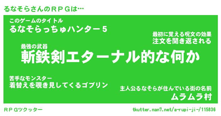 | 伝説のあだ名 | 『伝説の傭兵るなそら』 |