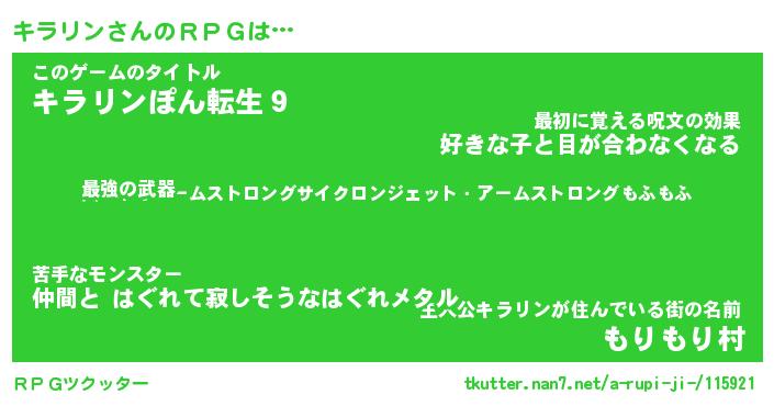 | 伝説のあだ名 | 『封印されし竜騎士キラリン』 |
