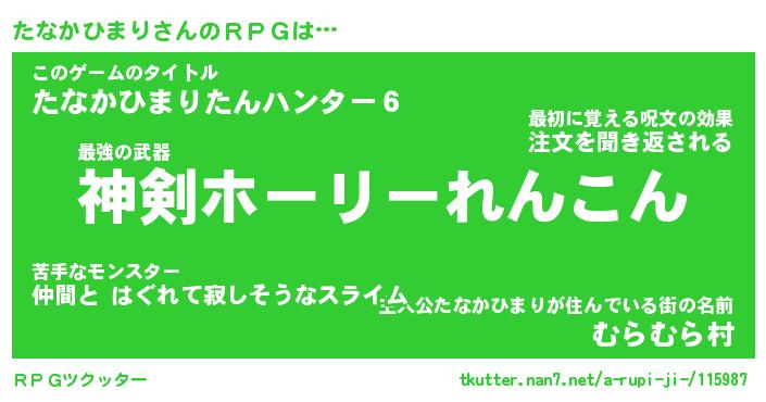 | ヒーロー風カッコイイあだ名 | 『スーパータナカヒマリ』『炎刃騎士タナ』 |