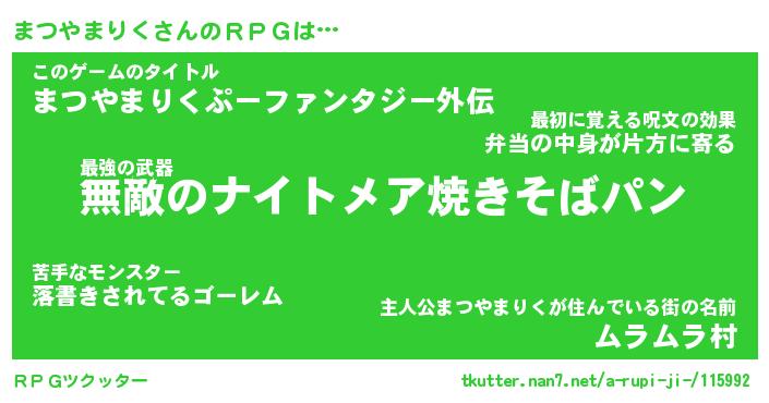 | 男性向けラノベタイトル風あだ名 | 『マツヤマリクアートオンライン』 |