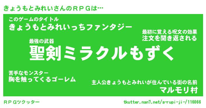 | 伝説のあだ名 | 『伝説の竜騎士きょうもとみれい』 |