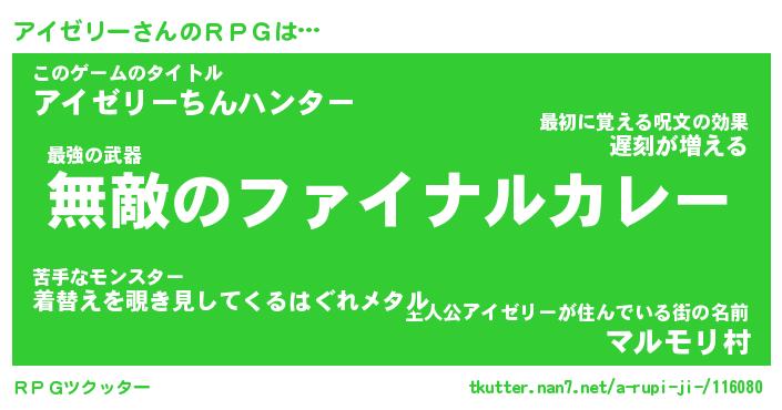 | ファンタジー風あだ名 | 『アイフェル』『エターナルアイゼリーー』 |