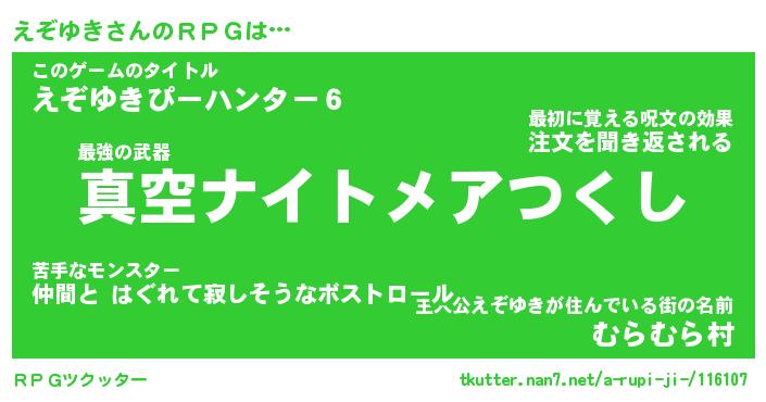| ファンタジー風あだ名 | 『エゾフェル』『エターナルエゾユキー』 |