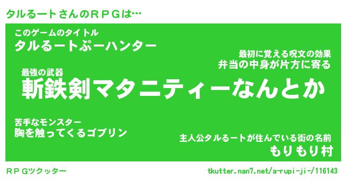 | ヒーロー風カッコイイあだ名 | 『スーパータルルート』『黄金騎士タル』 |