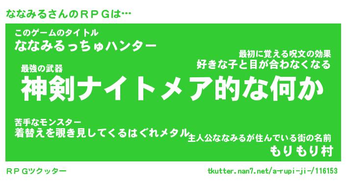 | ファンタジー風あだ名 | 『ナナフェル』『エターナルナナミルー』 |
