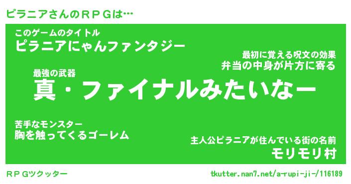 | 男性向けラノベタイトル風あだ名 | 『ピラニアアートオンライン』 |
