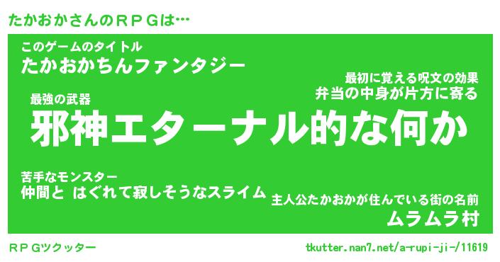 | 男性向けラノベタイトル風あだ名 | 『タカオカアートオンライン』 |