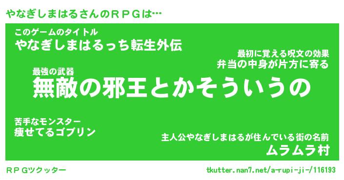 伝説のあだ名 | 『封印されし傭兵やなぎしまはる』 |