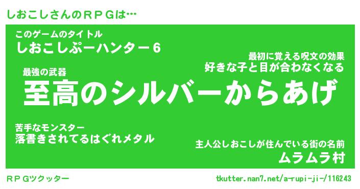 | 男性向けラノベタイトル風あだ名 | 『シオコシアートオンライン』 |