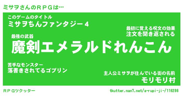 | 胡散臭い通販商品みたいなあだ名 | 『必ず成功する霊験あらたかなお札…その名も「ミサヲ」』 |