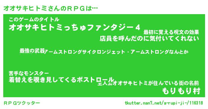 | ヘコむあだ名 | 『オオにー』『なまこ酢』『オオ太郎』 |