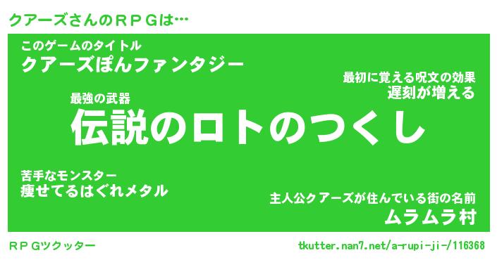 | ファンタジー風あだ名 | 『クアフェル』『エターナルクアーズー』 |