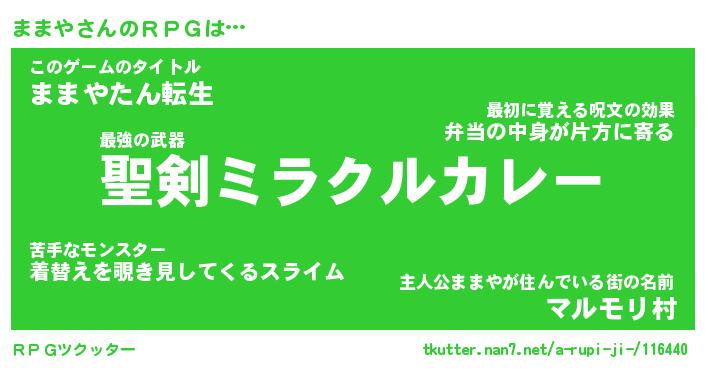 | 男性向けラノベタイトル風あだ名 | 『ままやの憂鬱』 |