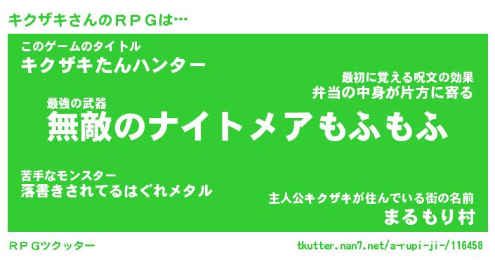 | 男性向けラノベタイトル風あだ名 | 『キクザキアートオンライン』 |