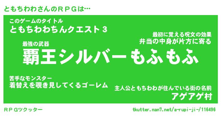 | 伝説のあだ名 | 『封印されし傭兵ともちわわ』 |
