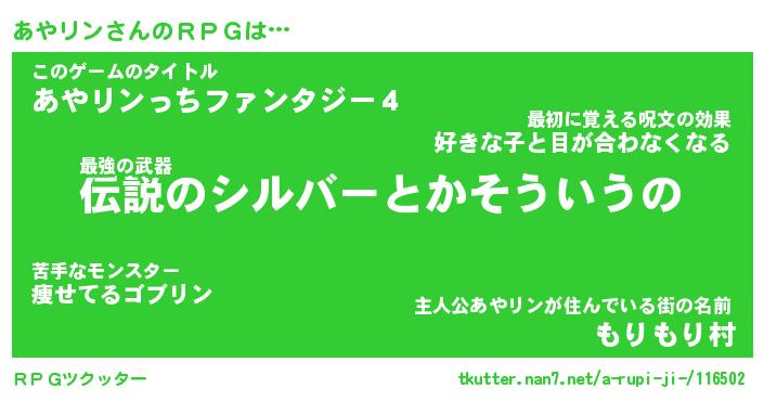 | ヒーロー風カッコイイあだ名 | 『スーパーアヤリン』『幻影騎士アヤ』 |