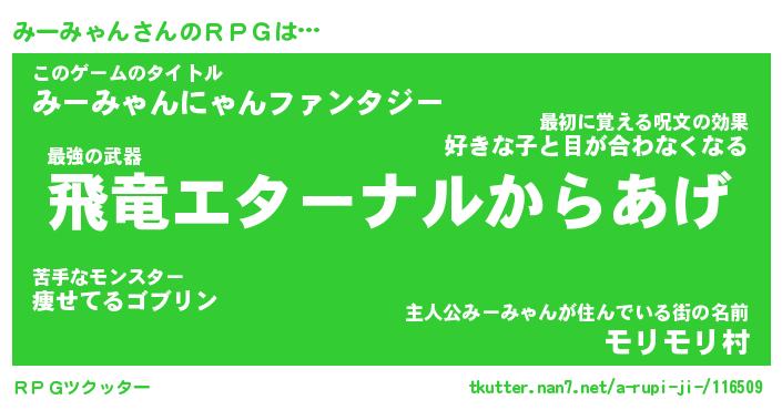 | ファンタジー風あだ名 | 『ミーフェル』『エターナルミーミャンー』 |