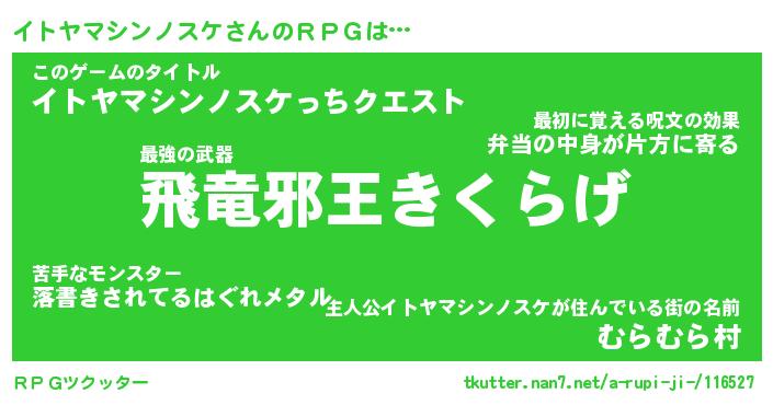 | 胡散臭い通販商品みたいなあだ名 | 『億万長者になれる水晶球…その名も「イトヤマシンノスケ」』 |
